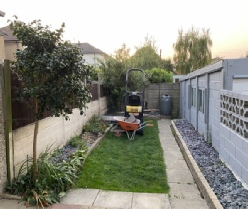 ‘We moved into our new home in April 2021 and decided the basic garden deserved a makeover as we both were not getting any younger, as low maintenance as possible. We wanted to keep a simple design so we asked Shaun to provide the ideas. The grass was removed and replaced with artificial grass.